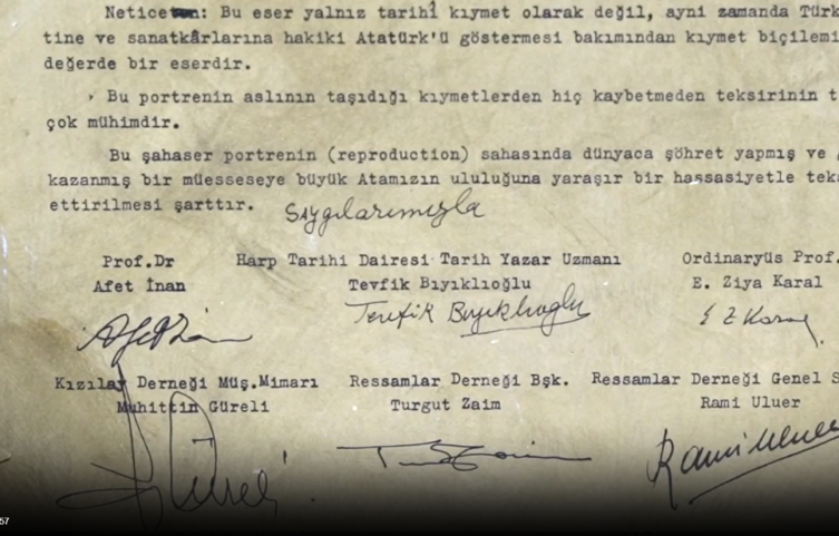 "Bu eser yalnızca tarihi kıymet olarak değil, aynı zamanda Türk milletine ve sanatkarlarına Atatürk'ün hakiki yüzünü göstermesi bakımından paha biçilemez bir değerdedir. Orijinal portrenin kıymetinden hiçbir şey kaybetmeden çoğaltılması ve gelecek nesillere aktarılması büyük önem taşımaktadır."