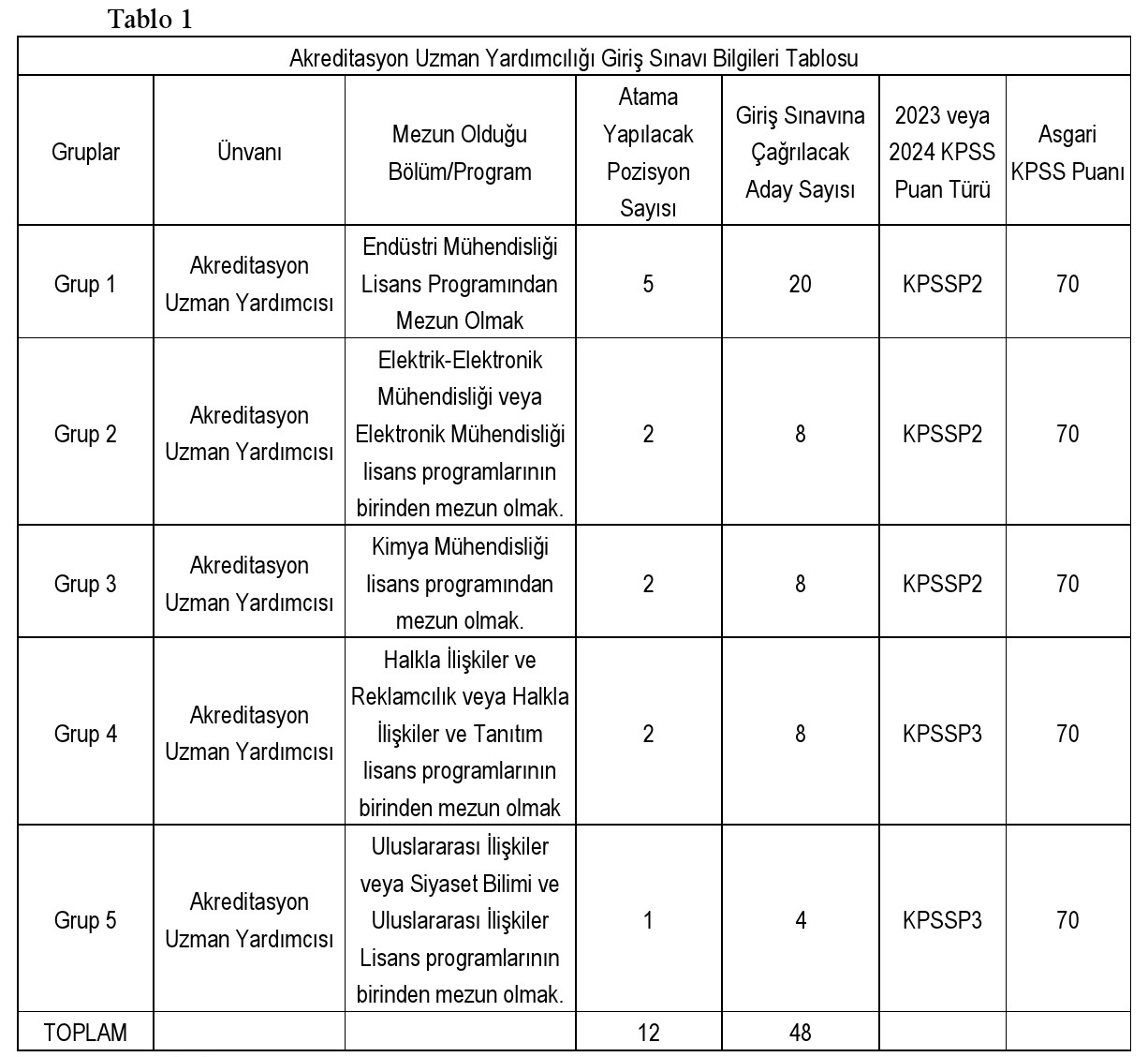 - Tarih ve detaylar, 6 Aralık 2024’te TÜRKAK’ın internet sitesinde (www.turkak.org.tr) ilan edilecektir.