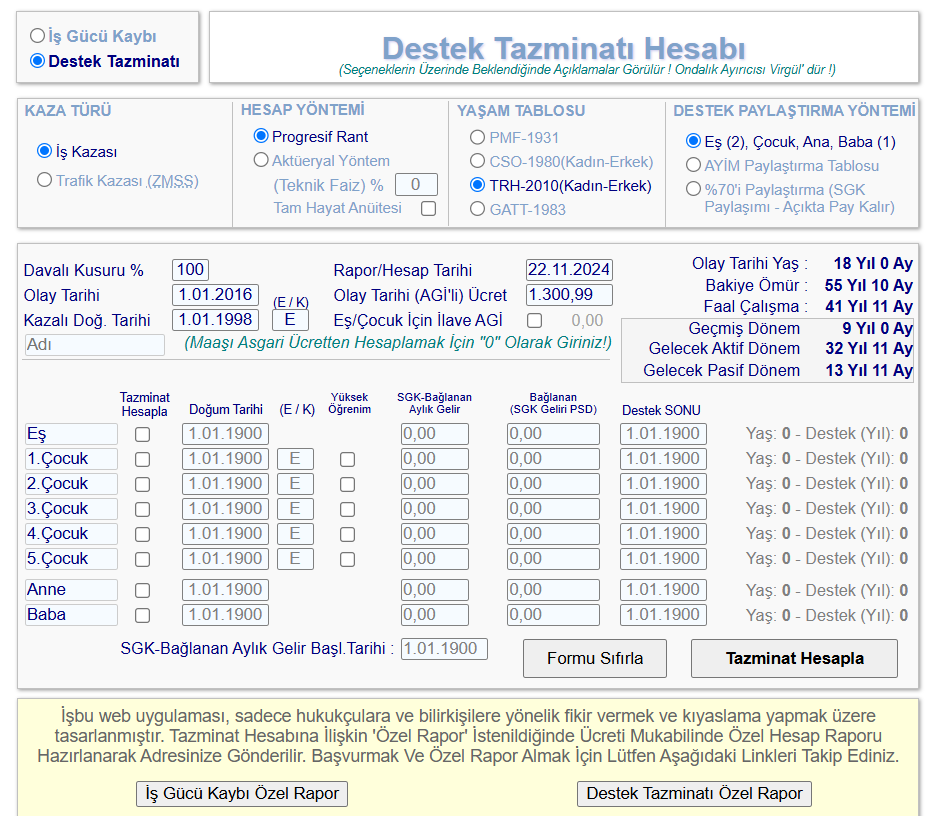 Etiketler : Destek Tazminatı Hesaplama, İş Gücü Kaybı Hesaplama, Trafik Kazası Tazminatı, İş Kazası Tazminatı, Tazminat Hesaplama Aracı, Destek Tazminatı ve İş Gücü Kaybı, Gelir ve Hisse Oranı Hesaplama, Tazminat Hakları