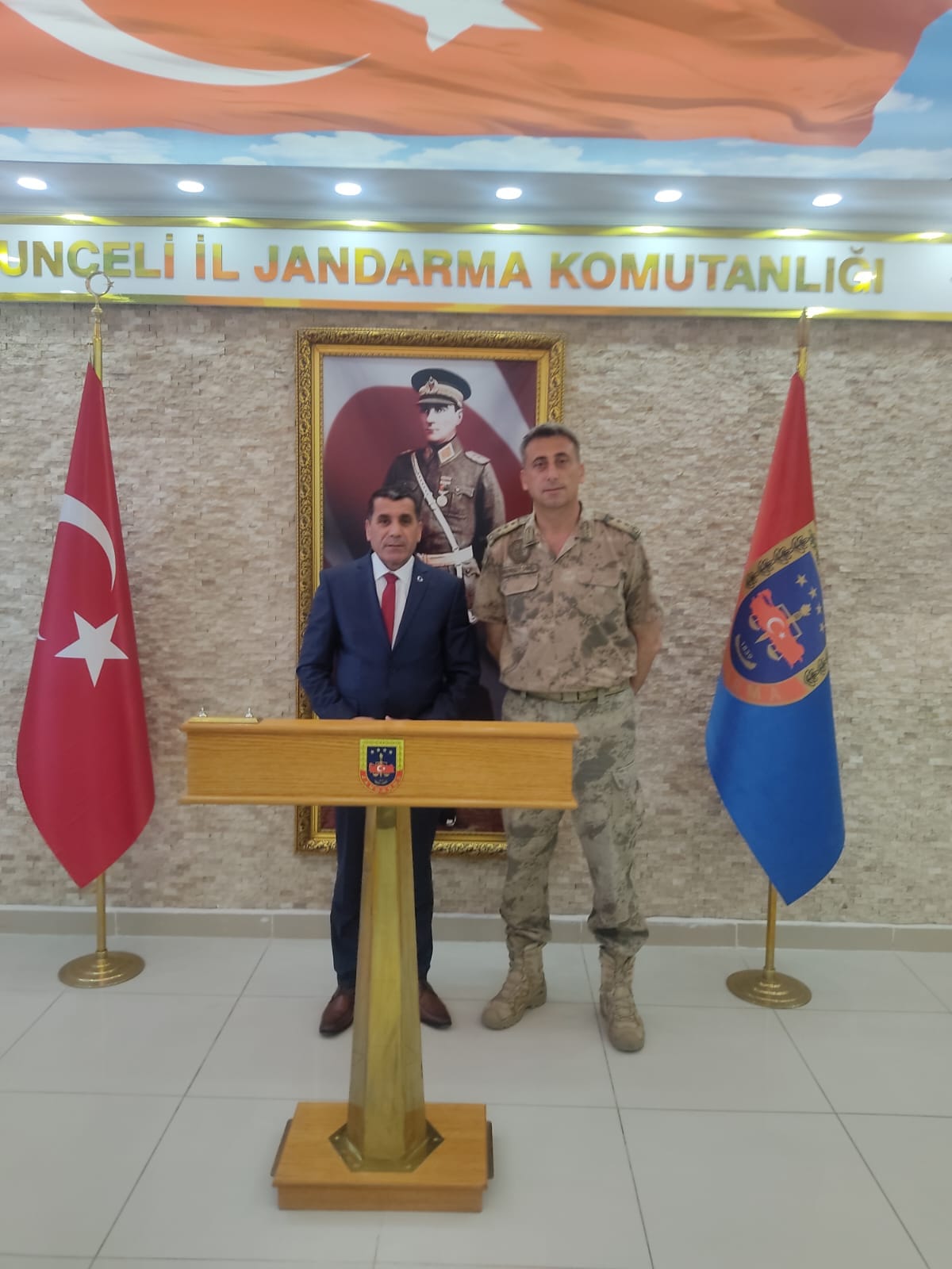 Jandarmamızın 184. kuruluş yıl dönümü dolayısıyla Tunceli İl jandarma Alay komutanlığını ziyarette bulunduk Kıymetli albay Sayın Tansu Barış Mahmutoğlunun misafirperverliğinden ötürü teşekkürlerimizi sunuyoruz. Semaya en yakın tepelerde Ay Yıldızlı bayrağımızı şanla şerefle dalgalandıran, asil milletimizin ve vatanımızın bölünmez bütünlüğünü koruyan korkusuz yürekler Sizler kalbimizde taşıdığımız en değerli madalyalarsınız Rabbim ayağınıza taş değdirmesin